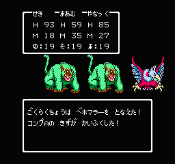 ドラクエ ご くらく ちょう- ごくらくちょうx1 ヘルコンドルx2 まずはhpが低いヘルコンドルから倒して頭数を減らしましょう。 マルティナにサマーソルト(飛行モンスターに特攻)使わせたら「かいしんのサマーソルト」を連発!ヘルコンドル2匹とも一撃で落ちていきました。このモンスターを使って作れる配合 ほうおう = ごくらくちょう × レジェンドホース レティス = ごくらくちょう × れんごくまちょう × アスタロト × ふくまねき